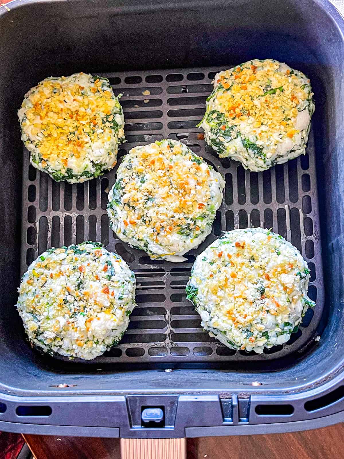 Preheat air fryer to 375°F (190°C). Place patties in a single layer. Air fry for 10–12 minutes, until the crumbs are deeply golden and the patties are heated through.