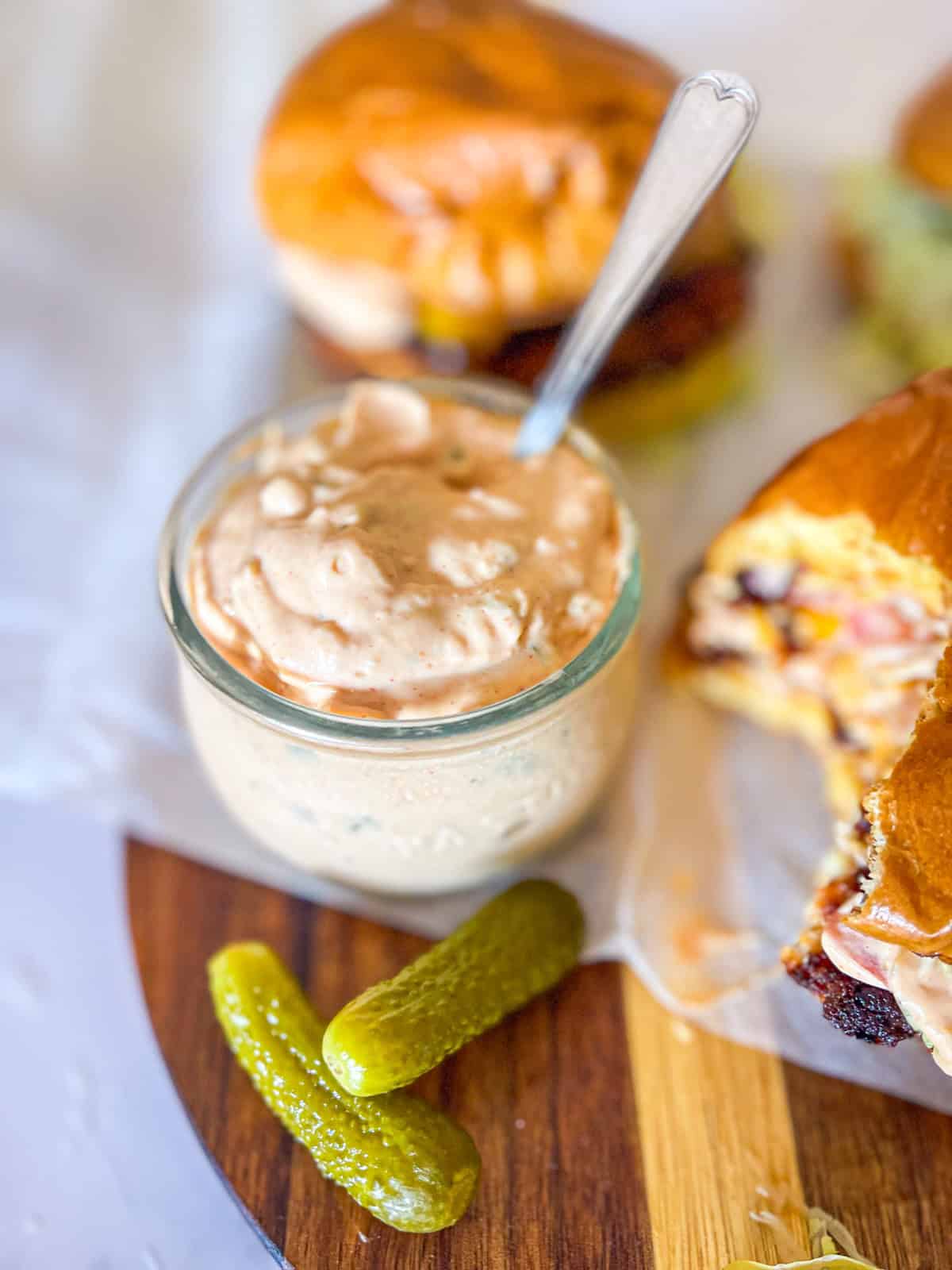 This is the easy burger sauce recipe that turns good burgers into great ones. Tangy, creamy, with just enough pickily bite to make you wonder why you ever bothered with plain mayo and ketchup.