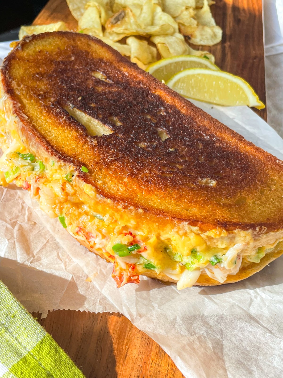 Butter-poached lobster, melted Gouda, and a creamy mascarpone filling with cheddar, Dijon, and lemon -- all tucked into sourdough and cooked until golden and crisp. Worth every bite.